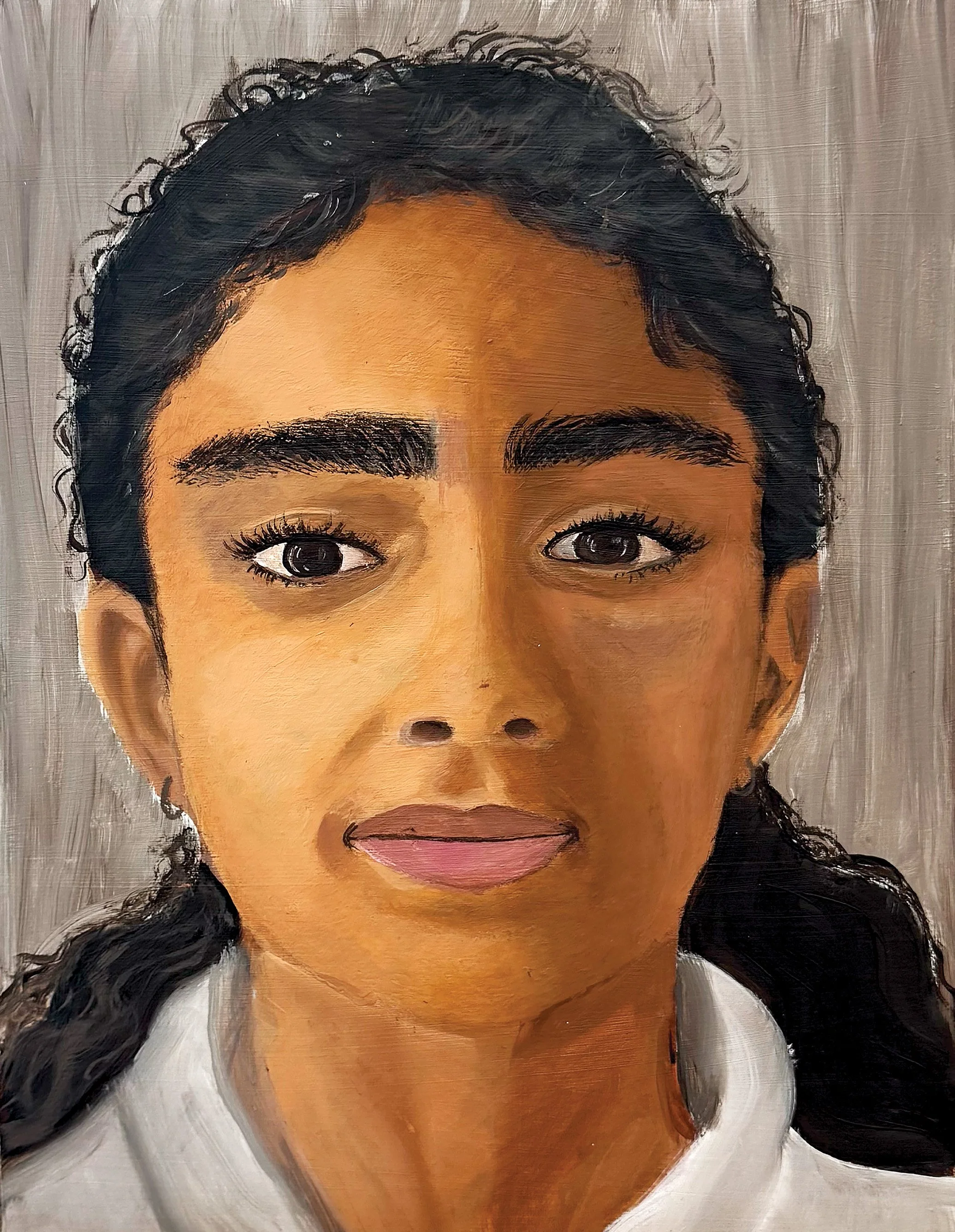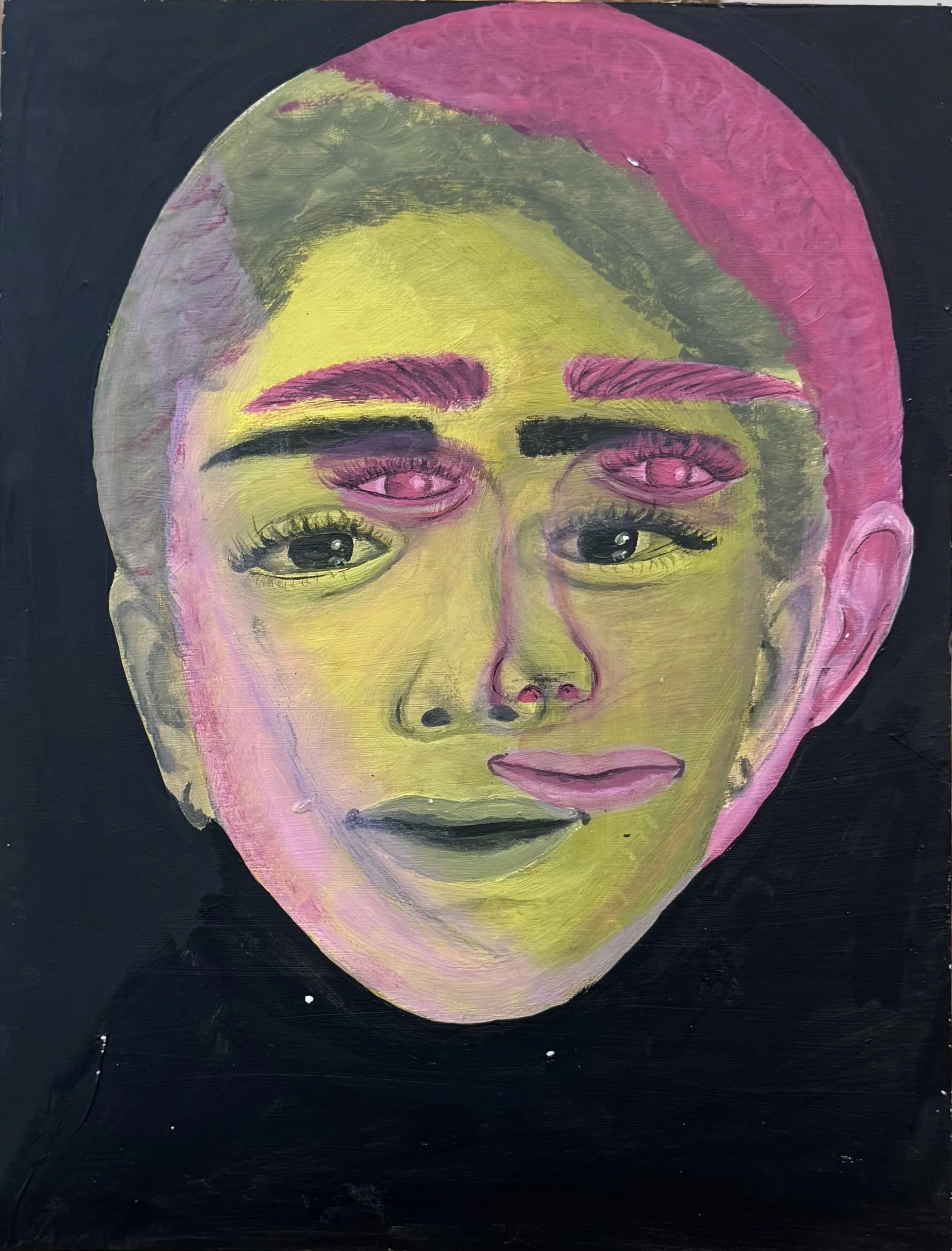 I used acrylic to show movement and texture the painting isn’t realistic its more about how I feel. Mushu became a symbol of my emotions and memories. This work is personal and shows things I can’t explain with words.