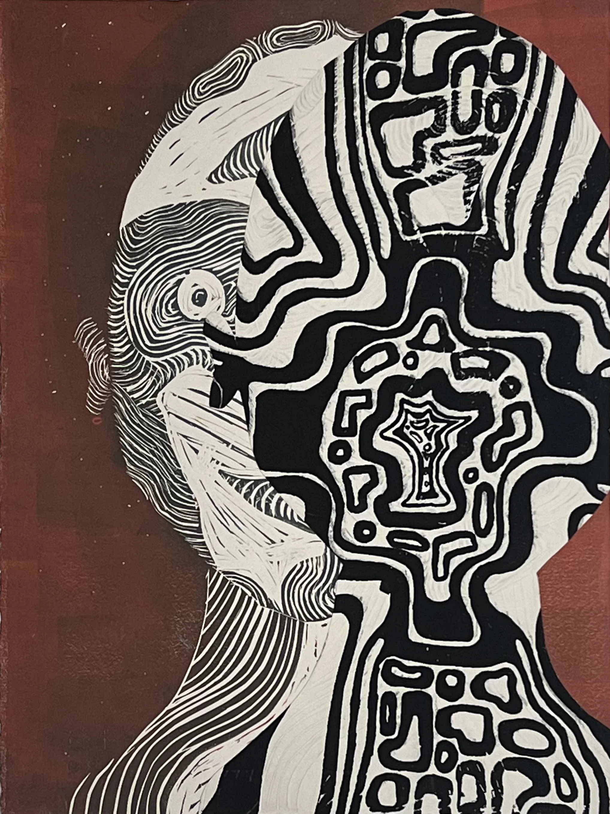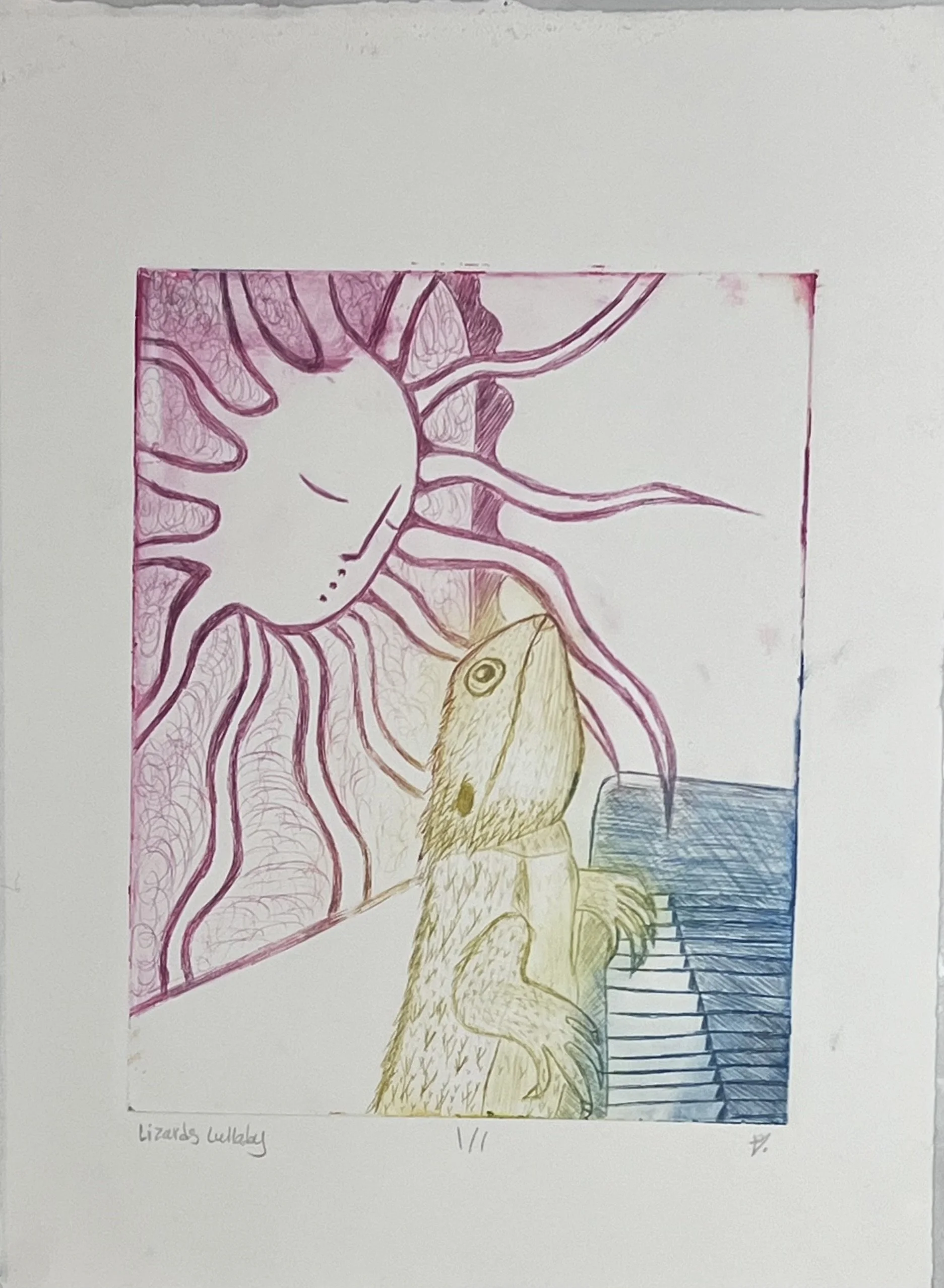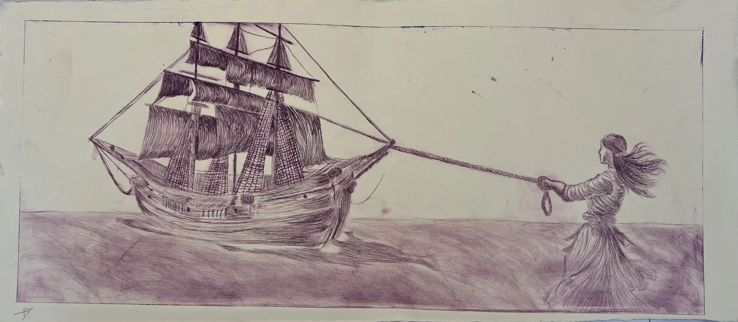 Pull it together is about how stressed I feel at university and in daily life. I scratched into the acrylic plate and pulled the print to show myself trying to hold everything together. The print shows tension, struggle, and control.