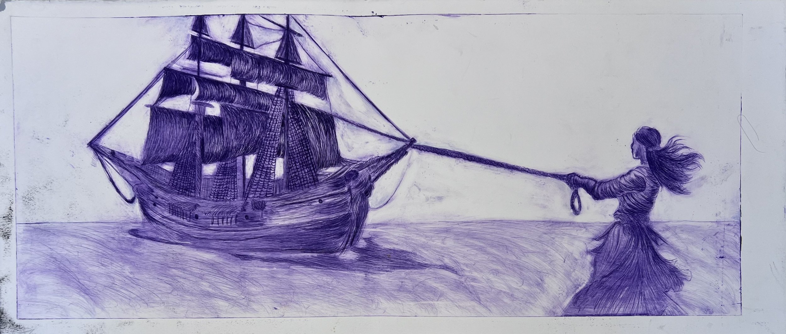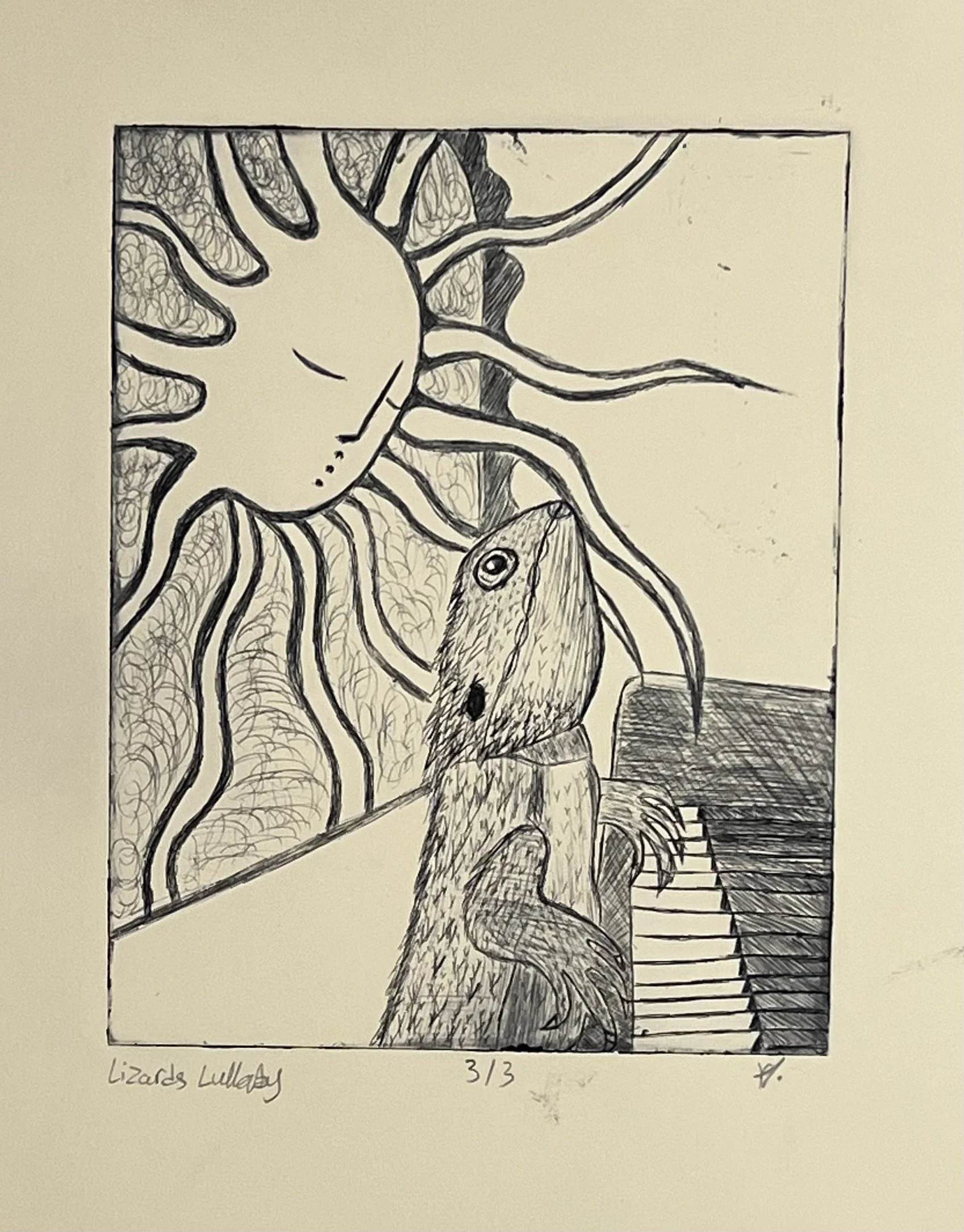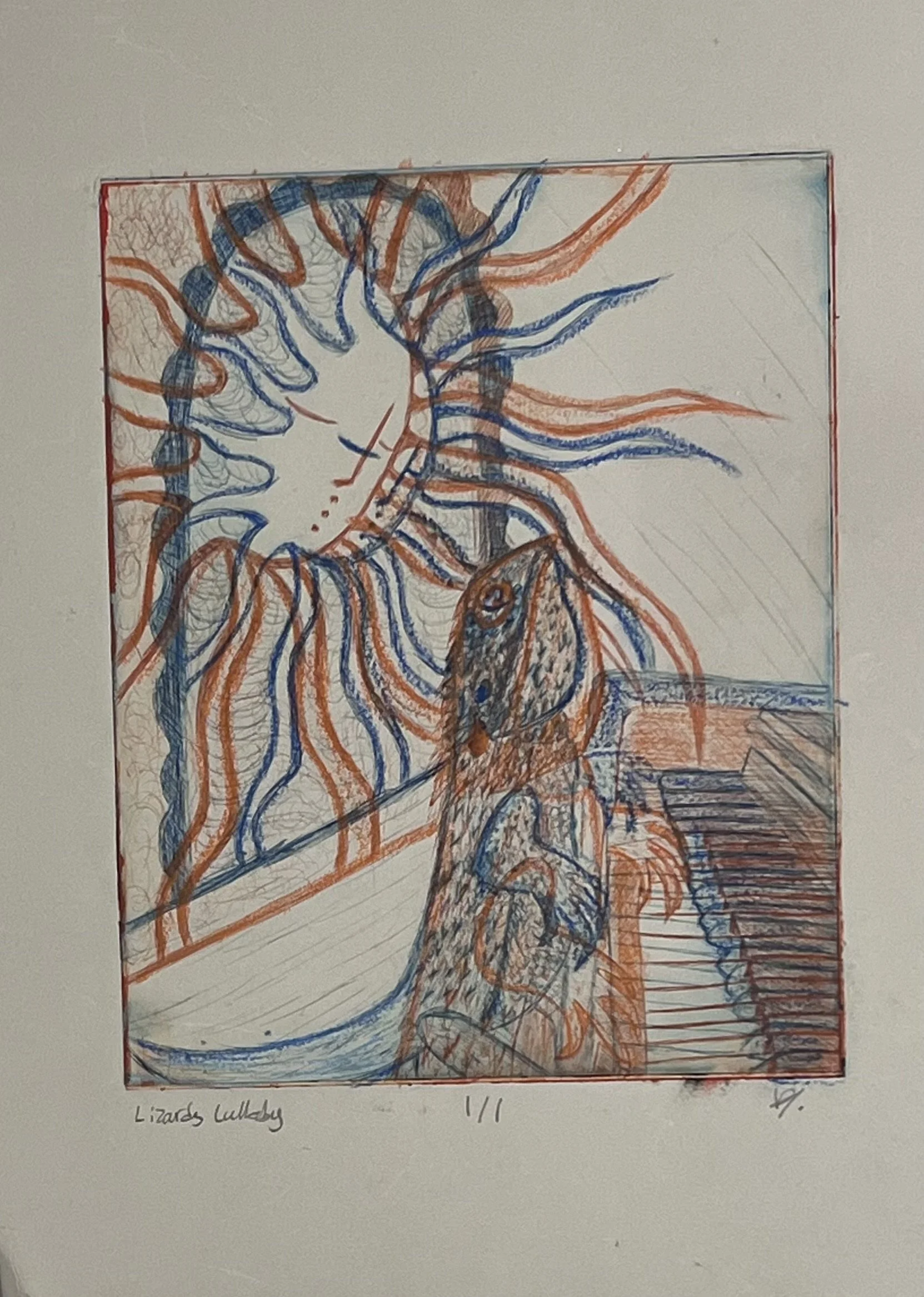Pull it together is about how stressed I feel at university and in daily life. I scratched into the acrylic plate and pulled the print to show myself trying to hold everything together. The print shows tension, struggle, and control.