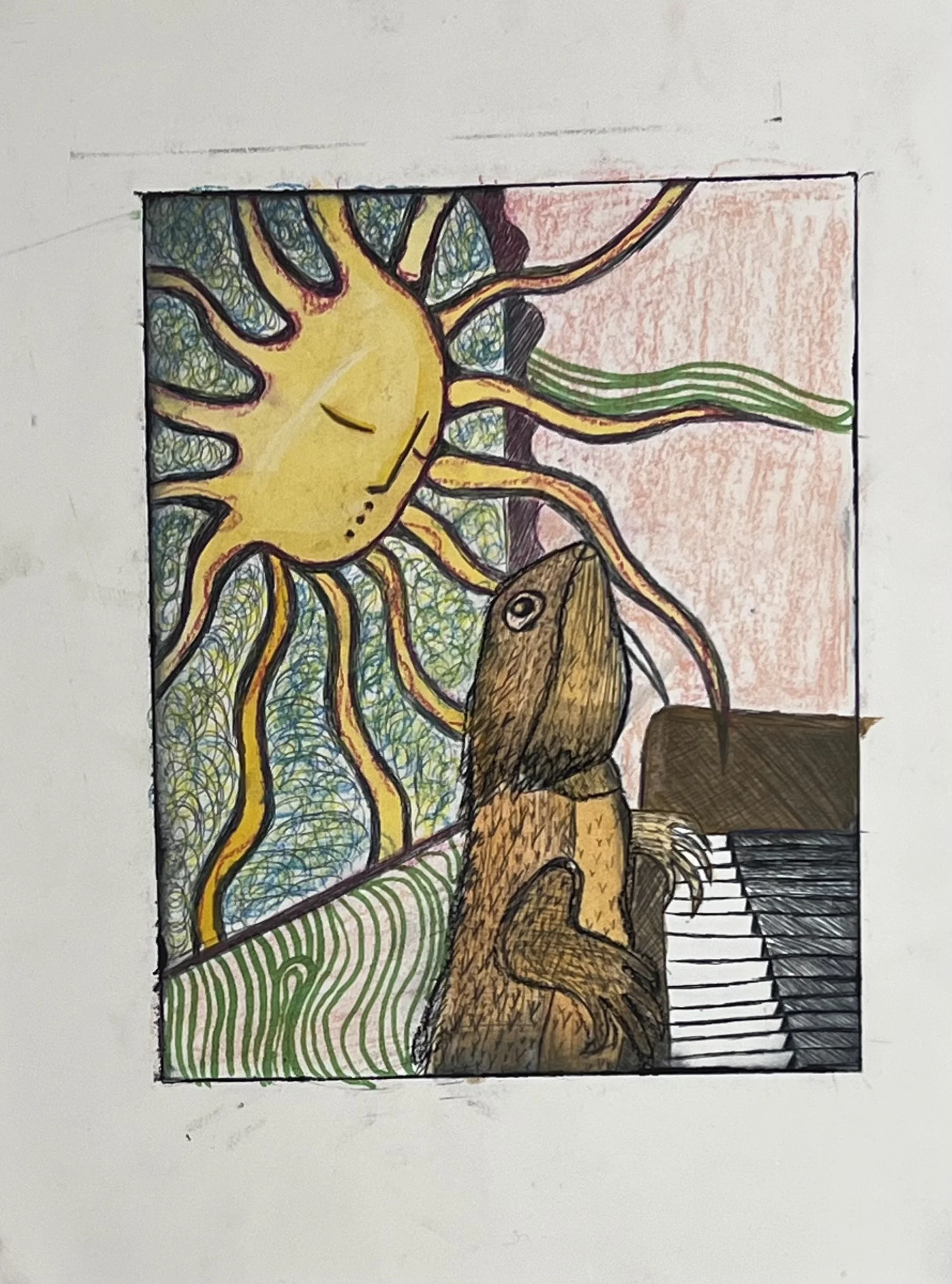 Making it helped me express my feelings physically. The lines and shapes show chaos and how I try to organize my thoughts and emotions. It›s about dealing with stress and trying to stay focused.