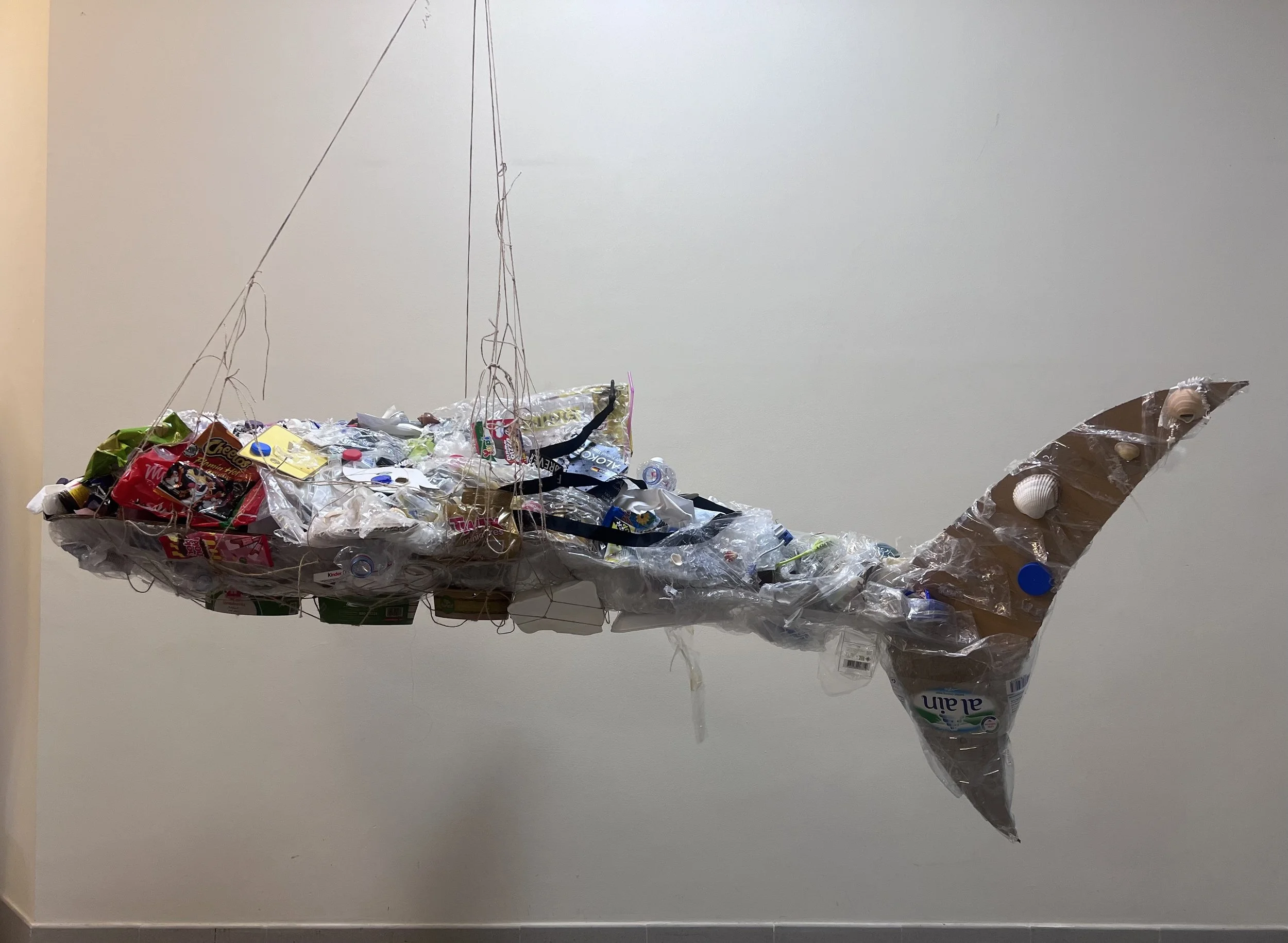 This project explores how general waste in the ocean affects marine life. I was inspired by Josh Gluckstein, who creates sculptures using recycled materials. For this work, I made a shark sculpture from cardboard and trash to represent how pollution and waste end up in the ocean. The piece reflects how the sea carries both natural and human-made materials and raises awareness about waste and sustainability.